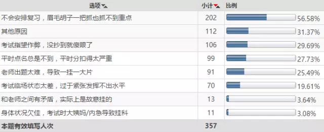 其余比较普遍的挂科原因,包括:作弊失败;平时分扣的太厉害;出题太难,以及一些陈大夫想不出来的其他奇葩原因。