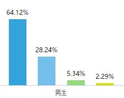 男生平均成绩能达到80分的只占不到总数的38%,而女生平均分在80分以上的比例则在52%以上;