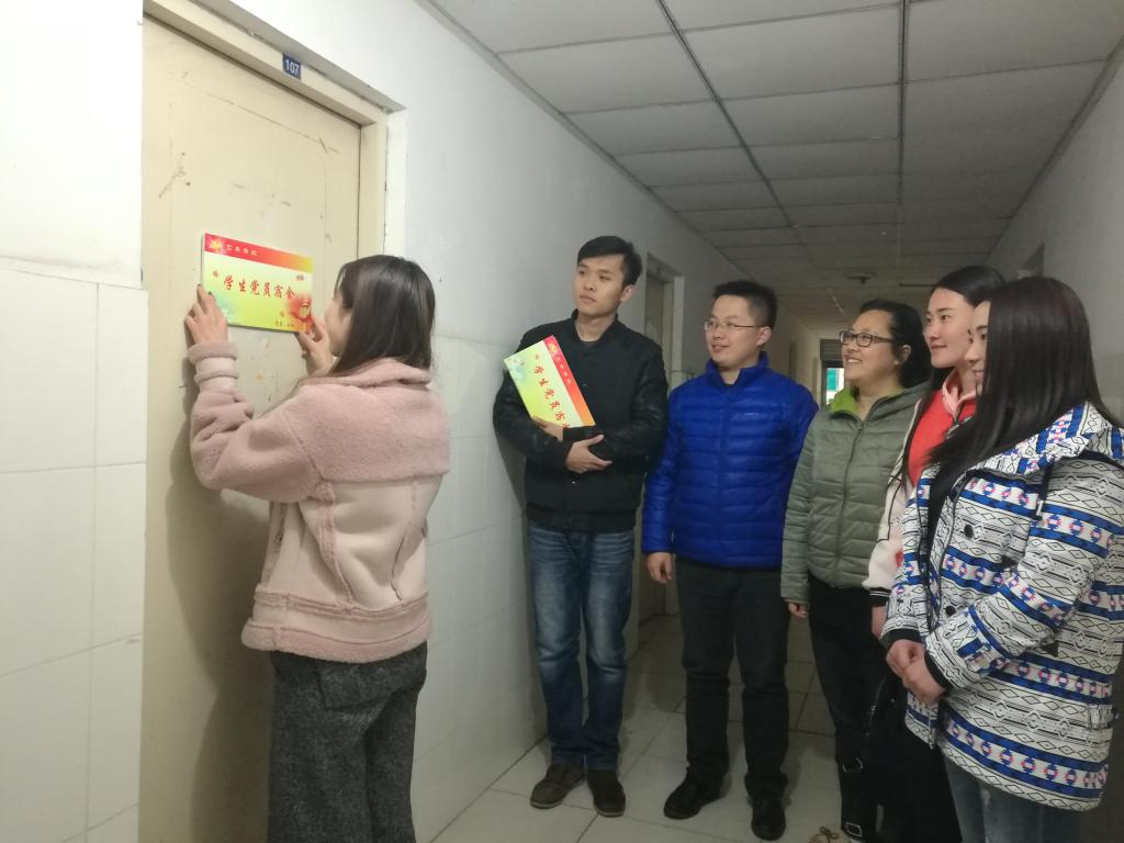 3月22日,艺术学院组织了“亮明党员身份,展示先锋形象”宿舍挂牌活动。本次活动由艺术学院学生党员工作站策划,目的是亮明党员身份,展示学生党员整体风貌,接受广大同学的监督,也为改进艺术学院宿舍整体卫生风貌,树立优秀宿舍典范,让学生党员起到引领带头作用。同时也是艺术学院落实学风建设的具体举措。艺术学院学生党支部书记周冶、英启琛老师及党员工作站同学参加了本次活动。