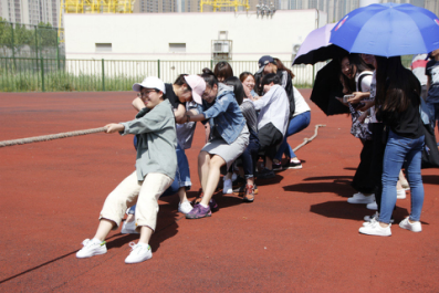 最激动人心,考验班级团结合作的便是拔河比赛。参赛的班级们召集参赛队员时,都在那里紧张积极地研究战略战术,有些同学虽然没有参加比赛,但也在一旁踊跃建言献策。当裁判哨声开始的时候,就能感受到来自参赛选手的那股紧张的气氛。参赛选手个个都使出浑身力气,使劲地拔。虽然有些同学用力过猛不慎摔到,但是他们会立马站起来继续比赛。