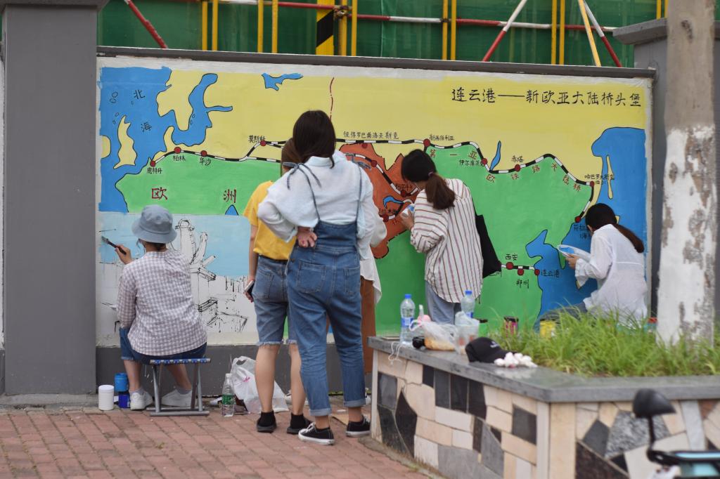 为助力学校创建江苏海洋大学,进一步发挥艺术设计专业在校园文化建设方面的作用,艺术学院在学校的关心和指导下,精心组织策划了这次活动。据活动的主要策划人冯大康老师介绍,“蓝色逐梦”主题墙绘涵盖海洋文化、传统文化和地方文化三部分内容,共有“一带一路”、“蓝色梦想”、“经典文化”三个篇章。其中“一带一路”篇分为“丝绸古路”、“欧亚大陆桥头堡”和“新丝路带”三个段落;“蓝色梦想” 篇分为“观海”、“亲海”、“赶海”和“梦海”四个段落;“经典文化” 篇分为“西游”、“孔子望海”和“徐福东渡”三个段落。墙绘活动将持续一周时间,到5月23日结束。