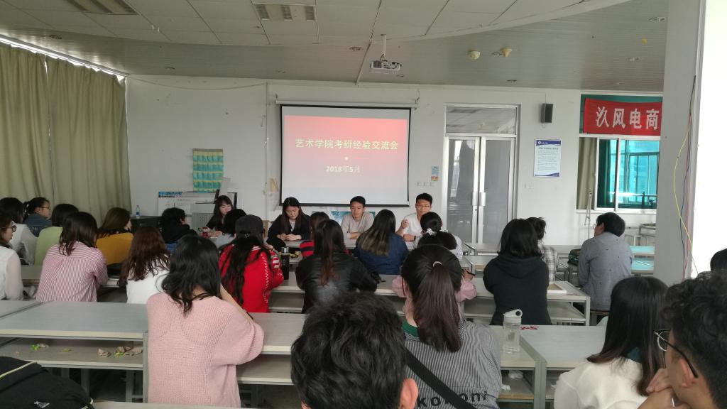 2018年5月23日下午3点,艺术学院开展考研经验交流会在艺术楼305教室举行。本次交流会邀请到了考取华东理工大学研究生的程通同学、考取苏州大学研究生的刁井达同学、考取北京林业大学研究生的张晓文同学、考取福州大学研究生的胡茜等四位毕业生。