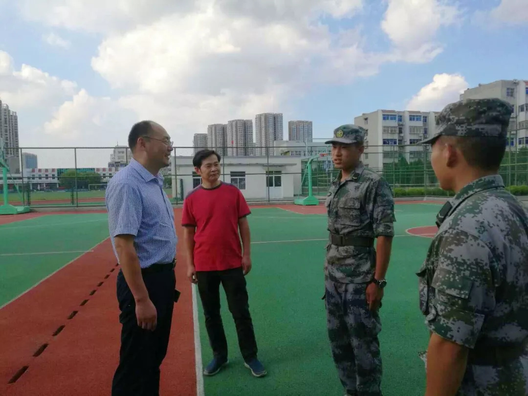 院领导等人在承训部队教官的介绍下了解学生前半程的军训情况。李春书记高度评价了教官们认真负责的态度,他代表艺术学院向教官们表示亲切问候和衷心感谢。
