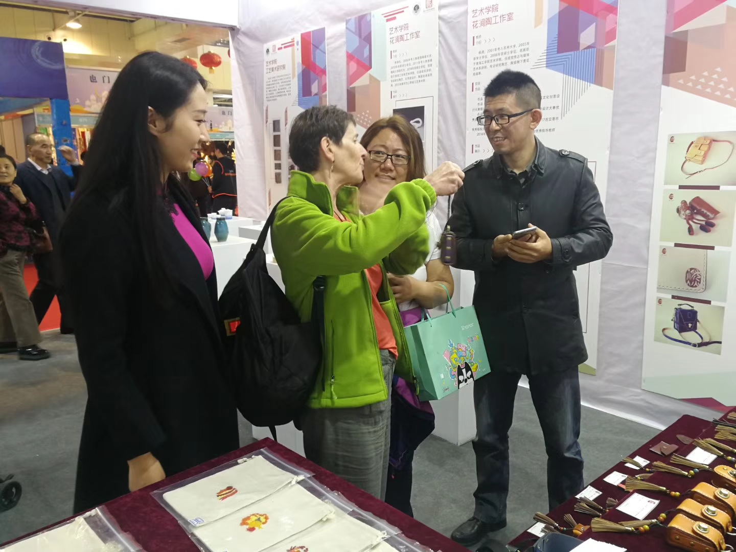 10月19日至22日,“一带一路”交汇点第十届连云港文化产品博览会在振兴花卉城举行,艺术学院师生的二百余件作品参展。参展作品涉及扎染蜡染、皮艺、陶瓷艺术、影视动画、虚拟现实、西游文化设计作品等多个门类,以传统手艺为载体将传统与现代、设计与技艺结合起来,坚守艺术理想,传承民族工艺,传达工匠精神,给观者以耳目一新的感觉,展览作品得到了与会人员的青睐。