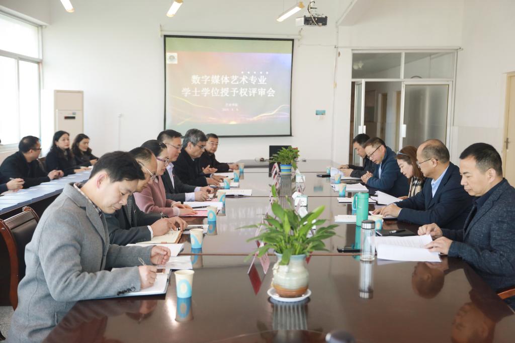 近日,艺术学院“数字媒体艺术”专业学士学位授权实地评审会在艺术楼会议室举行。由南京艺术学院设计学院博士生导师曹方教授、江苏师范大学创意产业研究院院长樊传果教授、徐州工程学院艺术学院院长崔浩教授、南京师范大学新闻传播学院广播电视系主任刘永昶教授、扬州大学新闻与传媒学院朱剑副教授组成的学士学位授予权评审专家组莅临我校实地评审。副校长严云洋、教务处处长李纪明、教学质量处副处长丁兆奎、学院党政领导班子成员、数字媒体专业教师等参加了评审会。评审会由艺术学院院长申屠留芳主持。