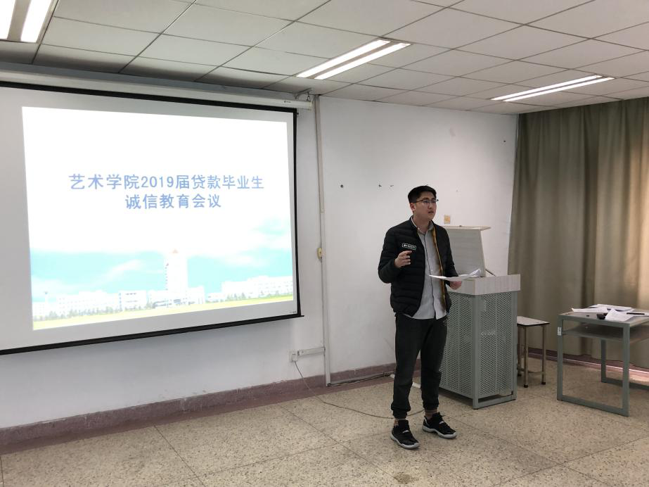 会议在艺术楼401教室举行,艺术学院办理助学贷款的全体毕业生参加了此次会议。会上,辅导员赵老师强调了诚信还款的重要性,建议大家用自己的实际行动书写良好的信用记录。同时,还向2019届贷款毕业生演示了还款流程和注意事项,他希望同学们能够信守承诺,对他人、对社会要讲诚信、按时还款。