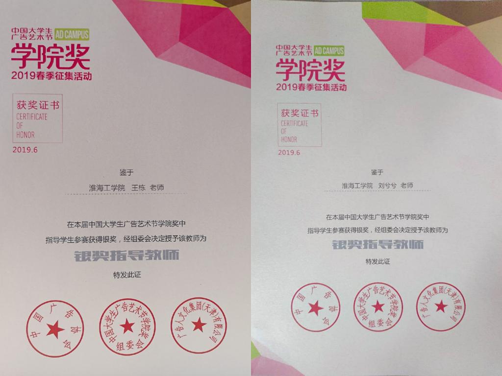 6月26日,2019中国大学生广告艺术节学院奖春季赛颁奖盛典在北京举行。业界大咖、学界专家以及来自全国高校的师生齐聚一堂,共享这场创意盛会。本届赛事,艺术学院学子取得了5银1铜的成绩,等级奖单次获奖人数有了新突破,王栋和刘兮兮两位老师荣获“银奖指导老师称号”。