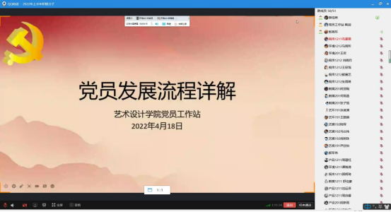 为扎实做好我院学生党员发展和入党积极分子培养工作,4月18日,党员工作站举办了党员发展流程专题线上培训会,会议由党员工作站站长柳佳烨同学主持,学生党支部书记敖燕环、党员工作站成员、2022年上半年拟发展对象、入党积极分子参加了本次培训会。