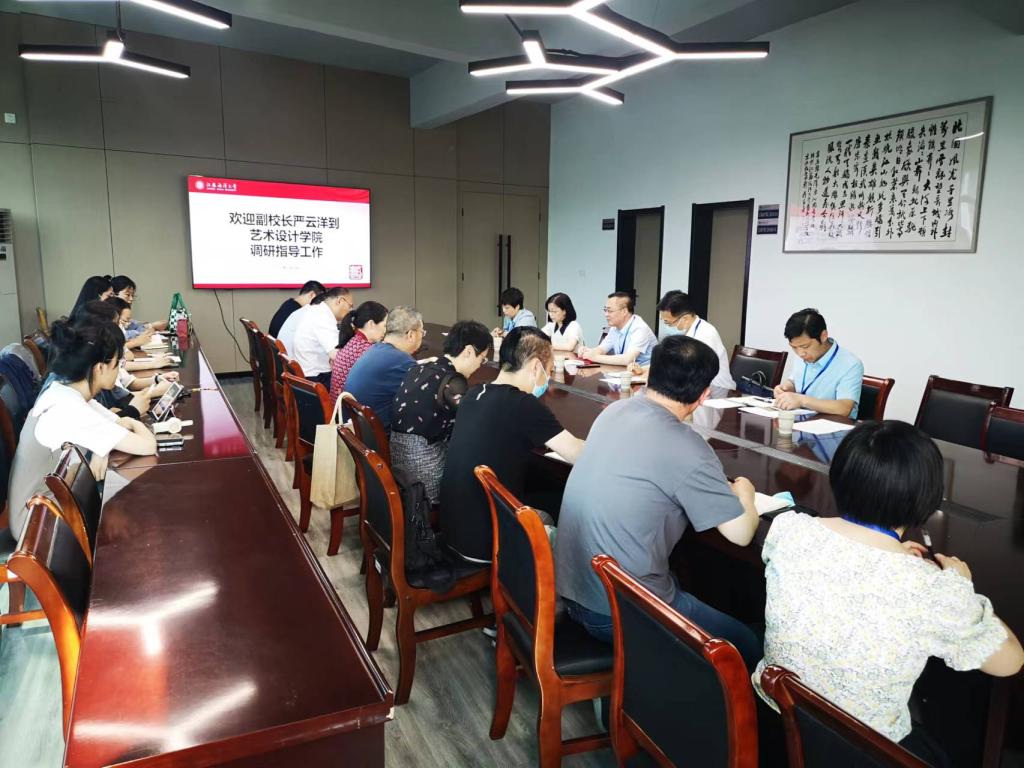 6月9日下午,副校长严云洋到艺术设计学院调研指导工作,教务处、教学质量处有关负责同志陪同调研,学院领导班子、系(室)主任参加会议。