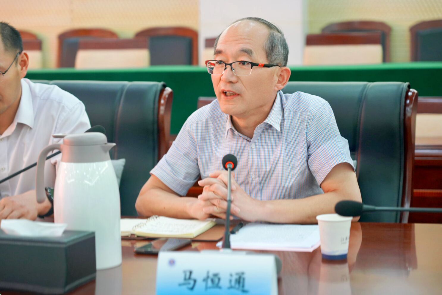 马恒通处长向来宾介绍了我校大学生就业创业方面的基本情况,近年来我校毕业生就业率一直保持较高水平,针对疫情等特殊情况,学校发动各种资源,开展多场线上线下大型集中招聘活动,在用人单位和学生之间建立起了畅通渠道,他表示学校与姑苏区的合作有着广阔前景,衷心欢迎各位企业家朋友到学校来开展招聘。
