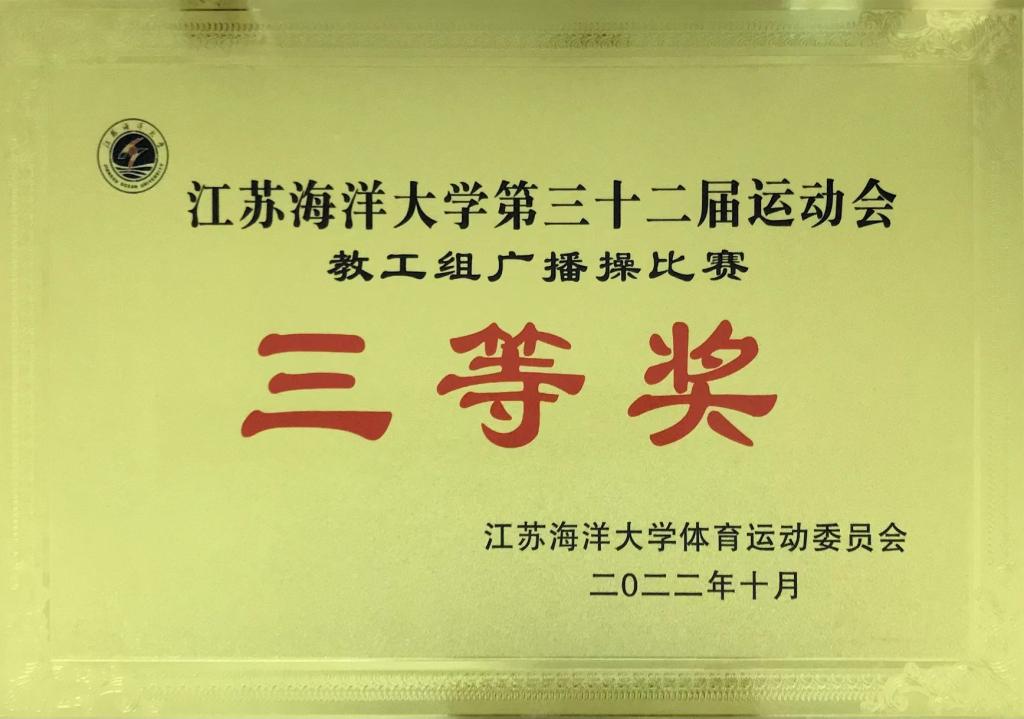 2022年10月21日,江苏海洋大学第三十二届运动会在苍梧校区体育场隆重开幕,在上午进行的校广播体操比赛中,我院师生分获学生组一等奖、教职工组三等奖!