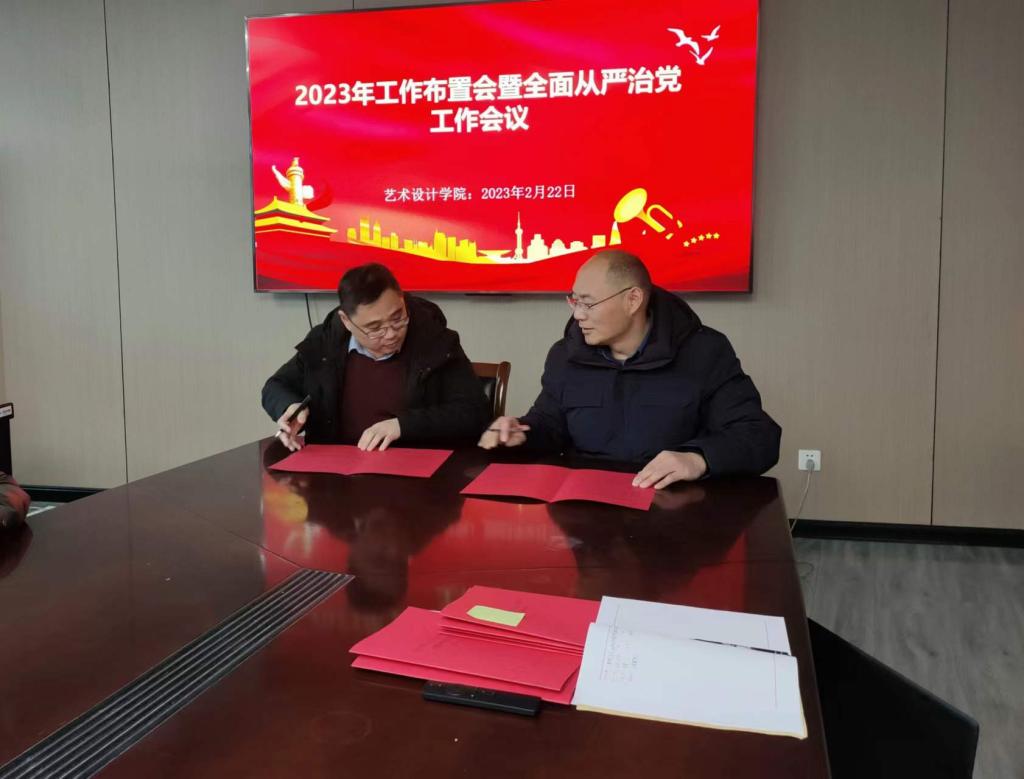 党总支副书记王欢布置了学院2023年党风廉政建设工作,副院长曾英、吴冬梅分别就学科及科研建设工作、本科教育教学审核评估工作进行布置,随后党总支书记李春与领导班子成员、各支部书记签订了本年度《全面从严治党责任书》。