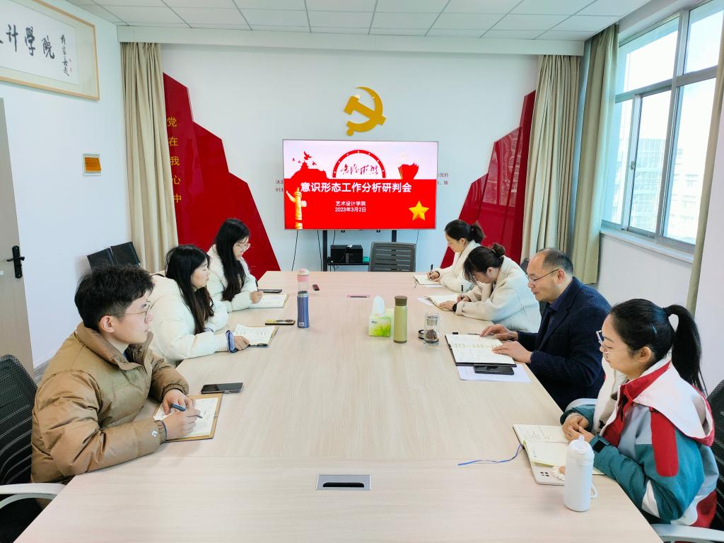 为认真贯彻落实党的二十大精神,牢固树立政治意识、大局意识、责任意识、阵地意识,做好意识形态工作,3月2日上午,艺术设计学院召开了2023年春季学期意识形态分析研判会,党总支书记李春主持会议,副院长曾英、全体辅导员、党政办负责人、教研办负责人参加了会议。