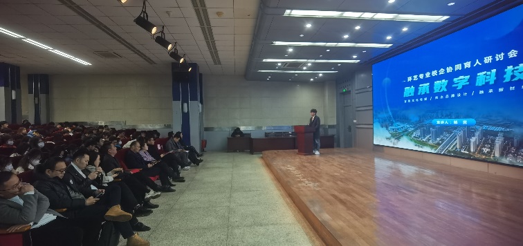 会议第一阶段为毕业生直招交流会,学院副院长曾英代表学院致欢迎词并介绍了学院基本情况。与会的企业家分别结合自身创业经历,为学生专业发展指点迷津,同时对各自公司情况及业态发展做了详细介绍并发布相关用人需求,为毕业生提供优质就业选择。