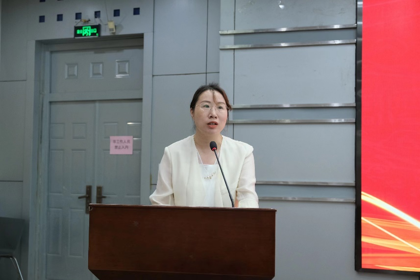 薛建华老师作为教师代表发言,她代表学院所有教职工欢迎2023级新生入校,希望同学们能在未来的学习里不断向前,展现青春活力,同时在遇到困难时,不惧怕、不退缩,要竭尽全力去克服,就算失败了也没关系,重点是要勇于突破自我,而且老师们也会不断的在学习中给予同学们最大的帮助。