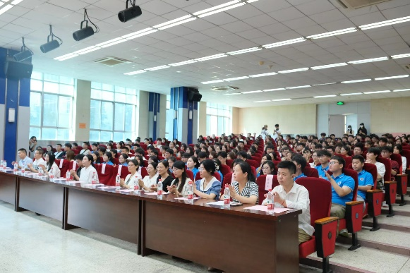 9月10号上午9时,我院在艺术楼报告厅隆重举行2023级新生开学典礼暨师生见面会,学院党总支书记李春、副院长曾英、副院长吴冬梅,各系(室)主任,党政办、教务办、学工办老师和2023级新生班主任出席典礼,来自五湖四海的234名本科生新生和学院首届15名硕士研究生新生参加了开学典礼,党总支副书记王欢主持典礼。