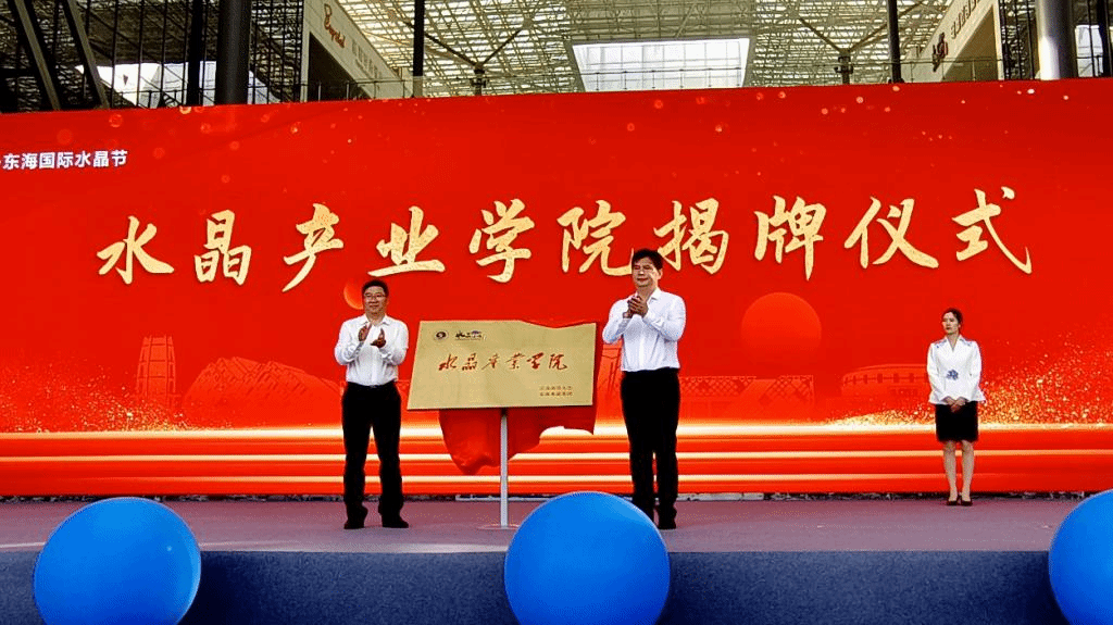 2023年9月20日,2023中国·水晶节暨水晶产业带直播嘉年华活动启动仪式在东海水晶城举行,副校长马廷淮和东海县委副书记、县长张其兵共同为江苏海洋大学水晶产业学院揭牌。会上,我院副院长曾英宣布了“2023中国·东海水晶产品设计大赛”获奖名单。