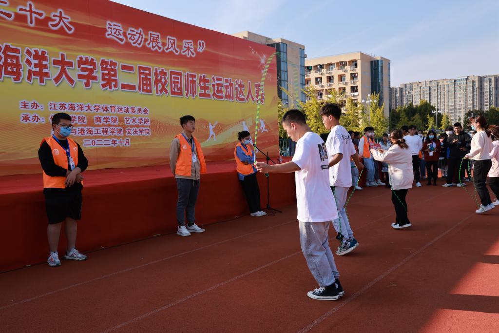 10月12日下午,以“喜迎二十大,运动展风采”为主题的 “中国移动杯”江苏海洋大学第二届校园师生运动达人赛在校西田径场隆重开幕,本届校园师生运动达人赛由校体育运动委员会主办,体育学院、商学院、艺术学院、土木与港海工程学院、文法学院承办,我院承办90秒单人跳绳、排球发球颠球在内的三个项目。