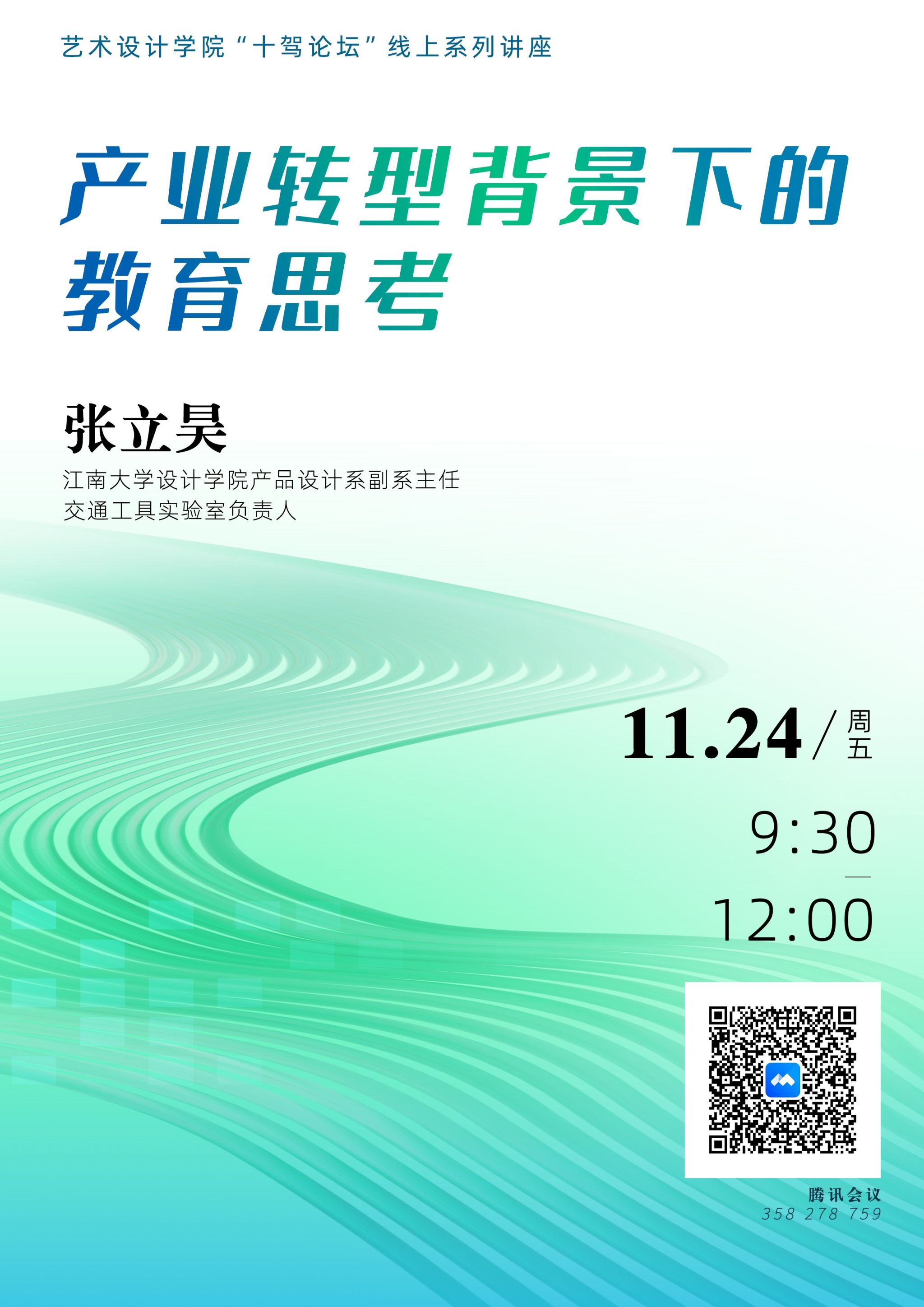 11月24日,我院邀请江南大学设计学院张立昊老师通过视频会议的方式进行了题为《产业转型背景下的教育思考》的讲座,副院长曾英副教授主持讲座,学院教师、研究生、本科生等参加。