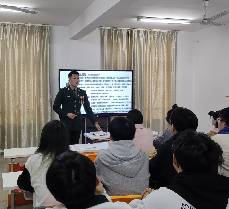 学院邀请校社会主义核心价值观学生宣讲团成员、中国大学生自强之星获得者王晨光以亲身经历,讲述了自己在部队服役期间及大学生活体验与收获,用朴实的语言、真挚的情感和鲜活的图片,向同学们讲述了他作为一名退伍大学生士兵的情怀与担当,展现了他爱党爱国的伟大胸怀、赤胆忠心的优秀品质。王晨光同学讲述自身退伍后经历,表明退伍不褪色,在学习中依旧不断努力,并积极参与学院学校组织的各项活动与比赛,绽放属于自己的风采。此次社会主义核心价值观宣讲,通过朋辈示范引领,生动诠释爱国精神。