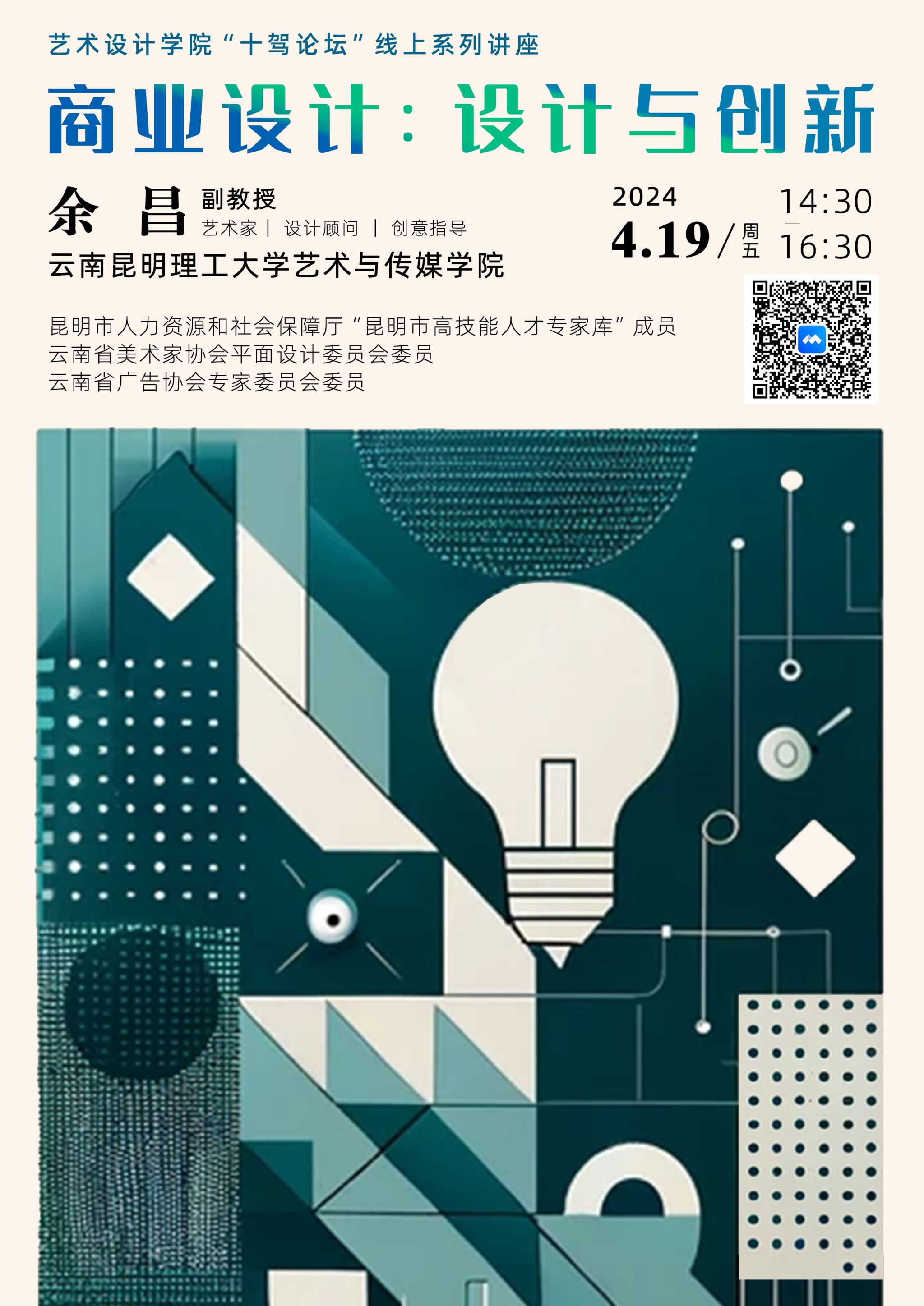 4月19日下午,昆明理工大学艺术与传媒学院余昌副教授通过线上平台,应邀为我院老师带来了一场题为《商业设计:设计与创新》的讲座。