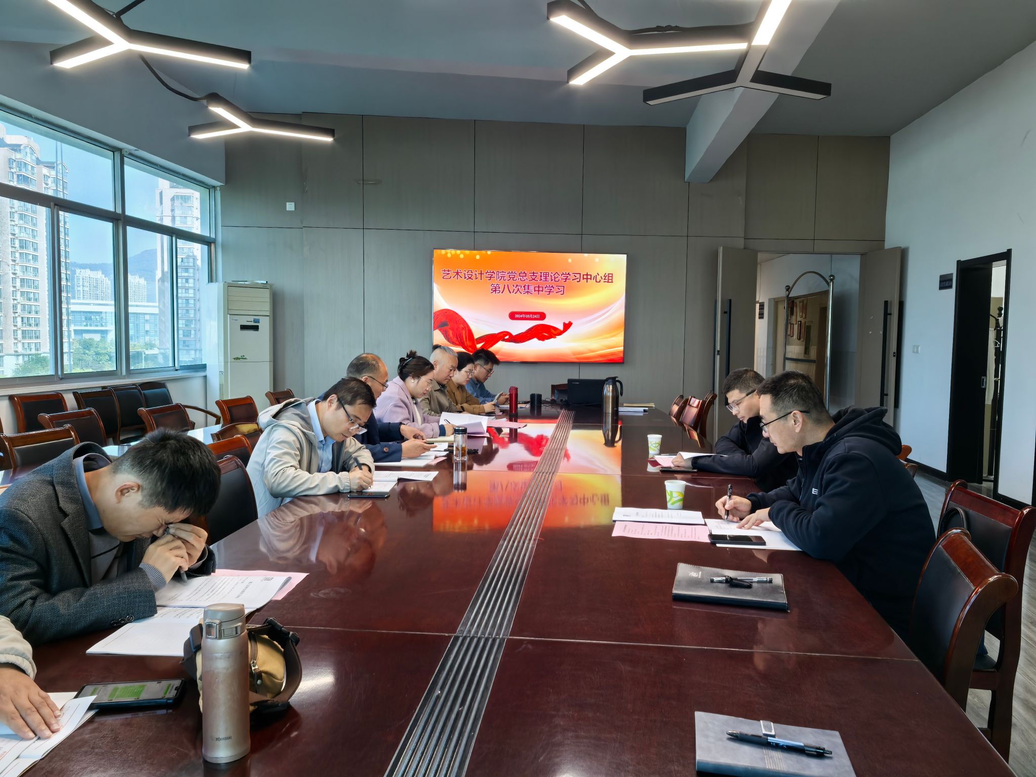 10月24日下午,学院党总支理论学习中心组开展2024年度第八次集中学习,党总支书记李春主持会议,学院党总支委员、非党员领导班子成员、各支部书记参加了学习。学校巡学旁听督查指导组组长,校党委常委、副校长朱国军进行了巡学旁听,党委统战部佟瑛老师陪同参加。