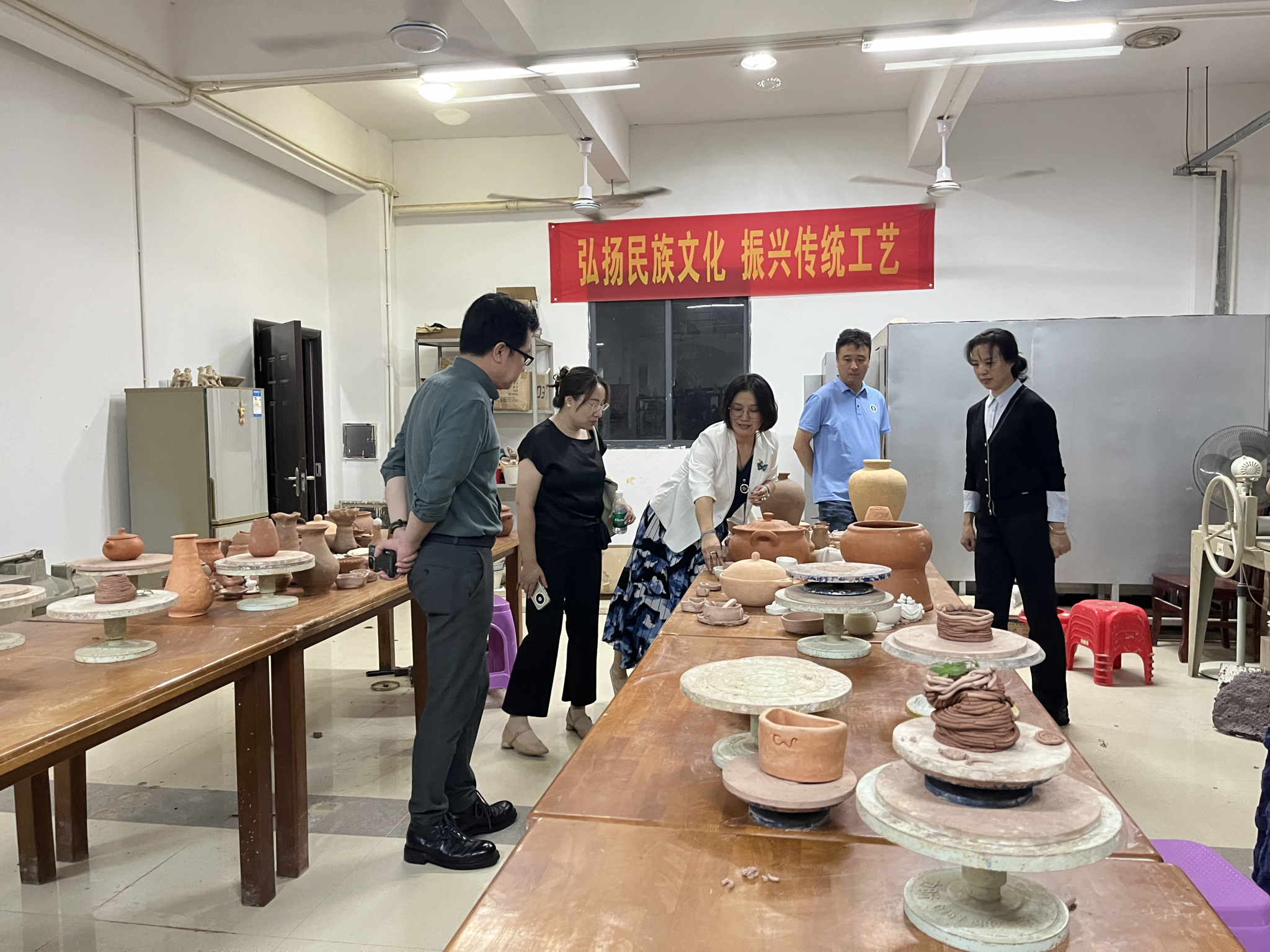 会后,考察小组在海南热带海洋学院创意设计学院与会人员的陪同下参观了该校的海上丝绸之路古瓷文化展、东方黎族传统工艺工作站、三亚旅游商品协同创新中心及海南自贸港文创智造实验室。