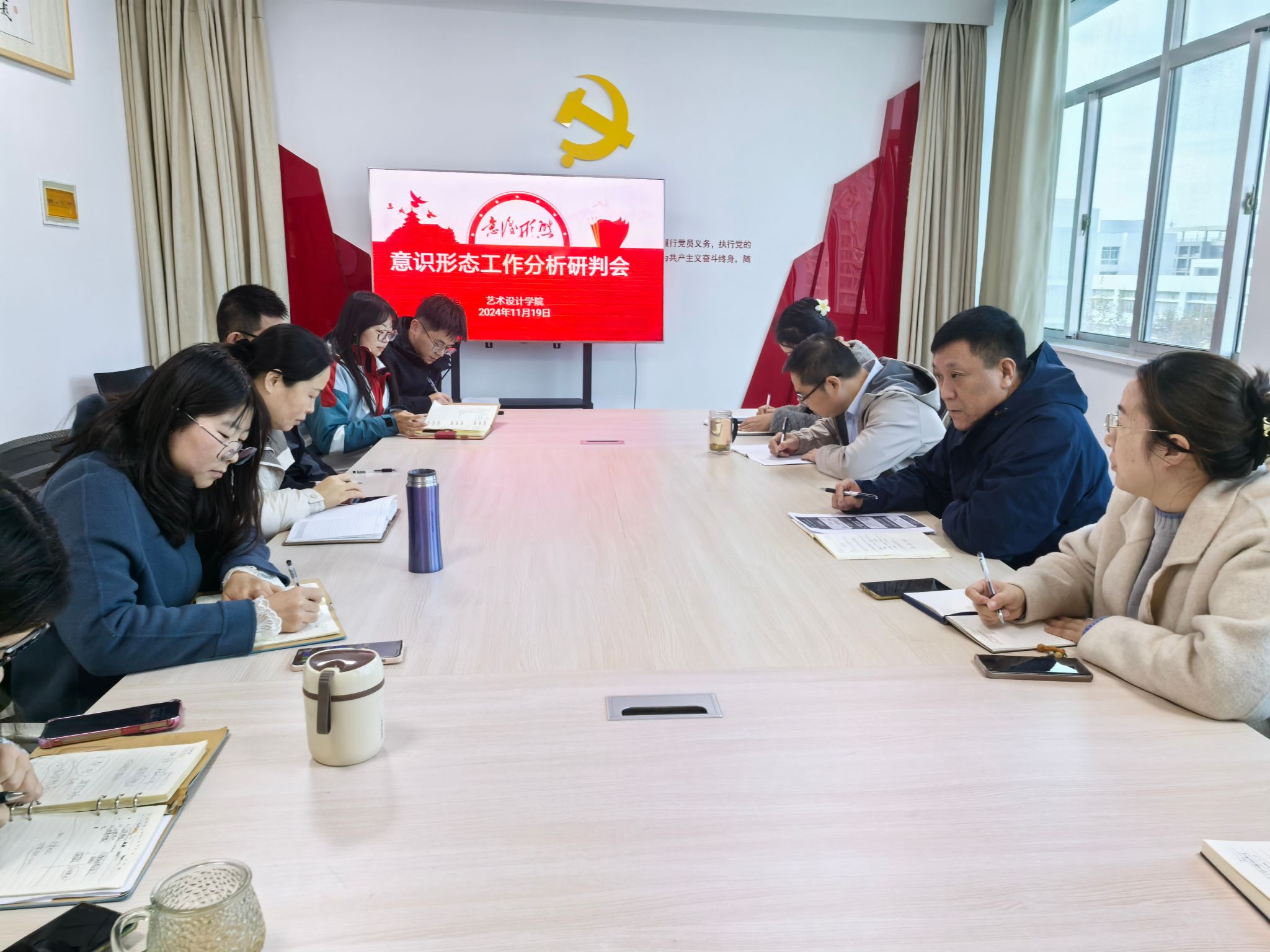 为深入学习贯彻习近平总书记关于意识形态工作的重要论述精神,进一步加强高校意识形态阵地建设,确保学院意识形态领域的安全稳定,11月19日,我院在艺术楼409召开了2024年下半年意识形态工作分析研判会。会议由党总支书记丁兆奎主持,学院领导班子成员、党政办公室、教研办公室、学生工作办公室、团委、实验中心等相关人员参加了会议。