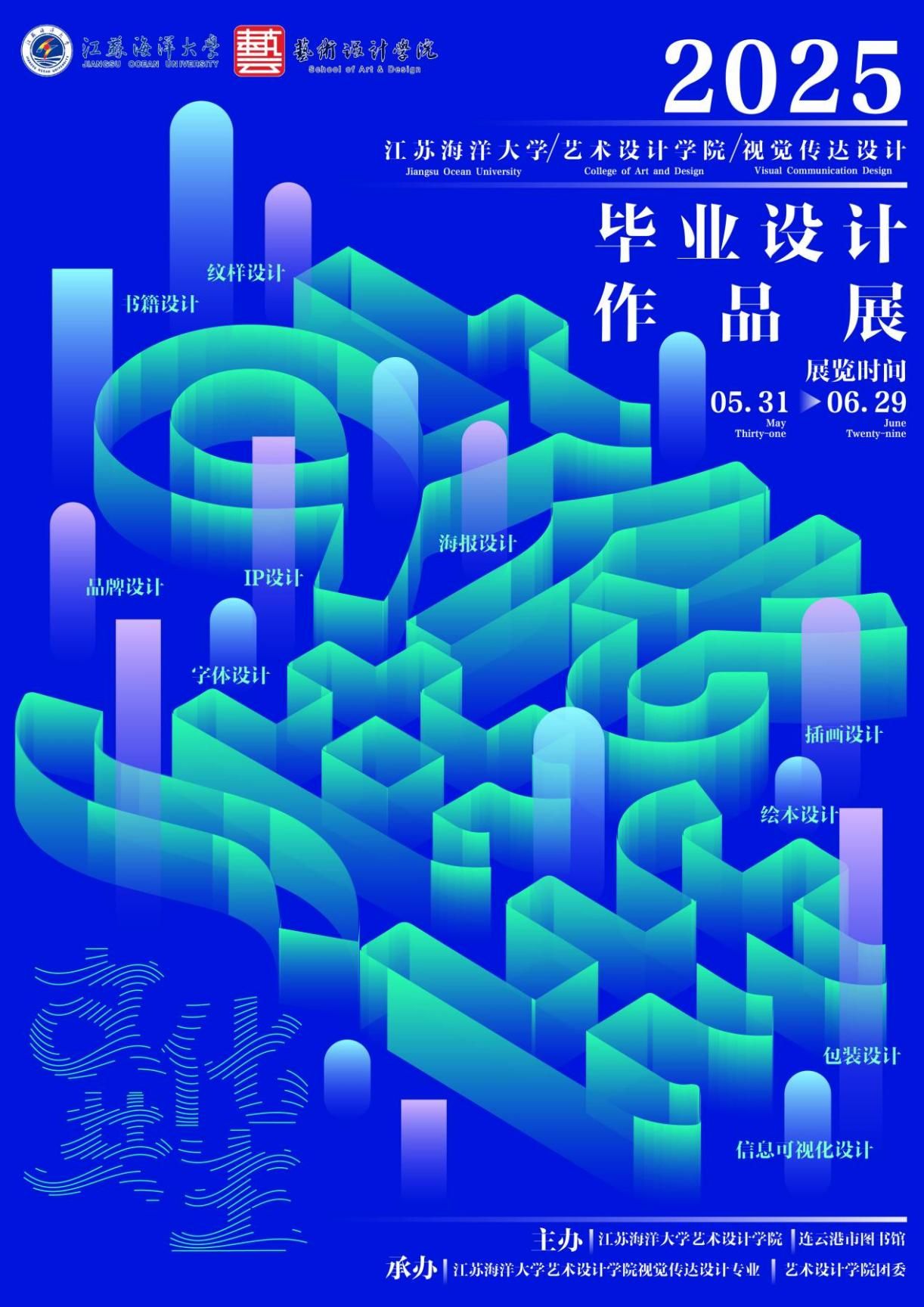 正值毕业季,江苏海洋大学艺术设计学院2025届视觉传达专业本科生毕业设计展正式启幕。本次展览以“文化共生”为主题,校内、校外均设有展场。校内展场位于艺术展览馆,6月6日开幕,持续至6月20日;校外与连云港市图书馆联合举办的城市毕设展于5月30日启幕,将持续至6月29日。同时,与苏宁广场联合策划的另一场城市毕设展也正在紧锣密鼓地筹备中。本次毕设展不仅是莘莘学子四年学业的总结,更是一次立足本土文化根基、探索设计当代表达、连接未来视觉趋势的集中呈现。学生们深入中华优秀传统文化的浩瀚宝库,从中汲取精神滋养与灵感源泉。无论是历史典故的重构演绎、地域民俗的现代转化、传统工艺的匠心独运,抑或东方美学意境的当代营造,都成为设计语言得以生发的沃土。