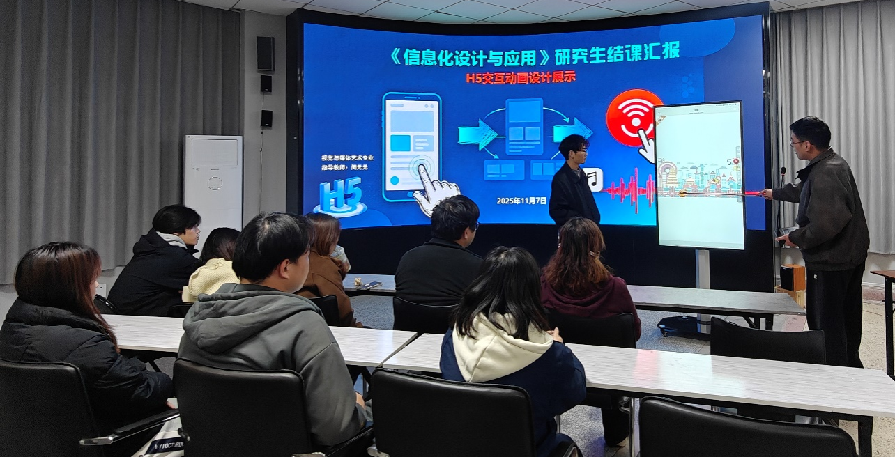 视觉与媒体艺术专业2025届研究生在闵元元老师指导下,以《信息化设计与应用》课程“H5交互动画设计”为载体,将生肖、丝绸等传统文化与非遗元素融入创作,让古老文化在数字空间焕发新生;2025级研究生在叶姗虹、张景两位老师带领下,通过《当代滨海人居环境设计》课程,从生态、生活、文化三维度破解滨海人居难题,既以“蓝绿交织”策略优化海岸带生态,又深挖海洋文化基因实现在地表达。汇报现场,本科生跨年级观摩交流、土木与港海工程学院专家跨界献策,形成“艺术+技术+工程”的多元协作氛围,研究生的创新思维、实践能力与跨学科视野得到充分彰显,成果获师生与专家高度认可。