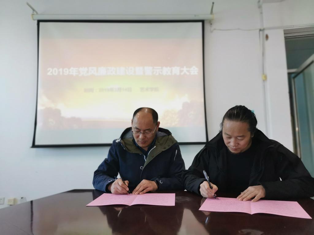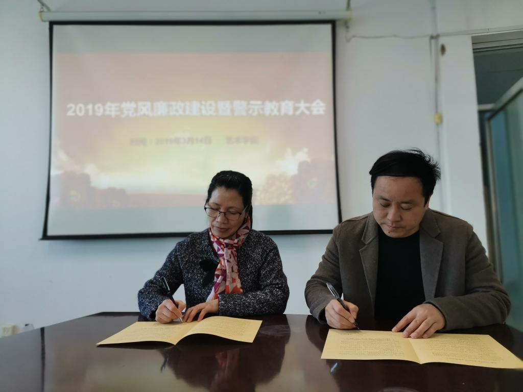 最后,学院院领导与责任对象分别签订了《党风廉政建设责任书》和《安全管理工作责任书》,同时全体人员签订了《廉洁自律承诺书》。