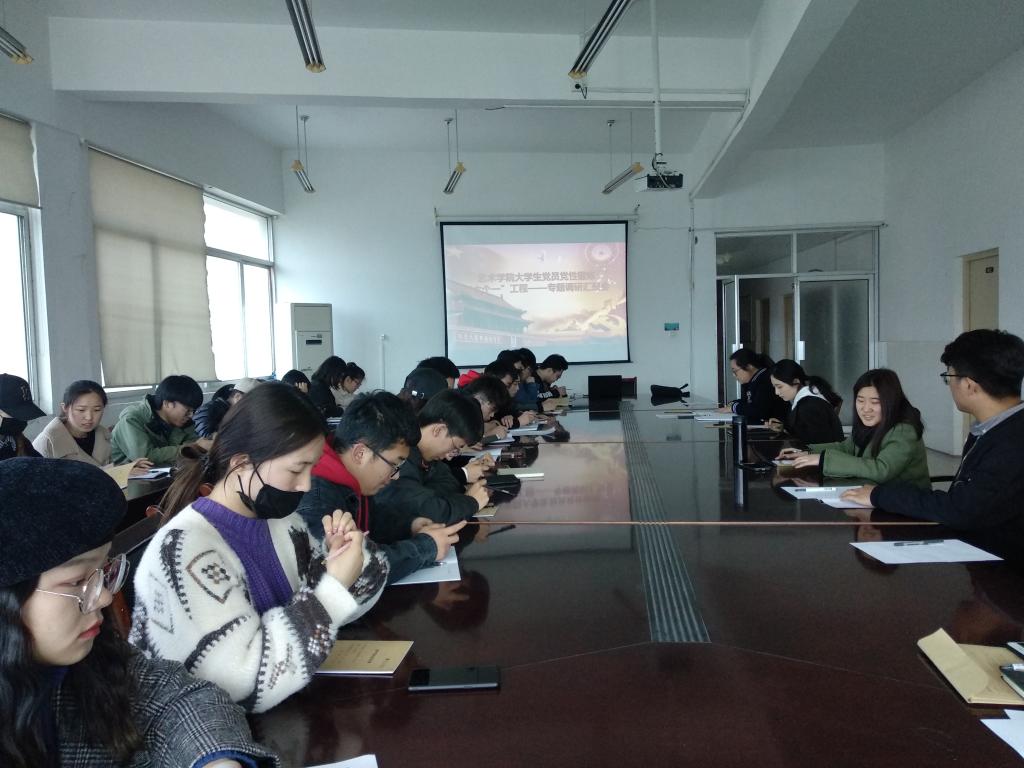 4月10日下午,艺术学院学生第一、第二党支部在艺术楼会议室召开专题调研报告会,学生支部全体师生参加,会议由学生第一党支部书记周冶主持。