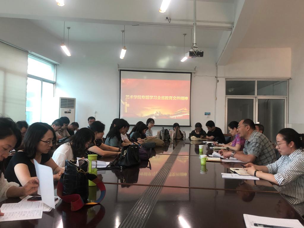 6月12日下午,艺术学院在艺术楼409室专题学习全省教育大会精神。会议由艺术学院党总支书记李春主持,全体教职工参加学习。
