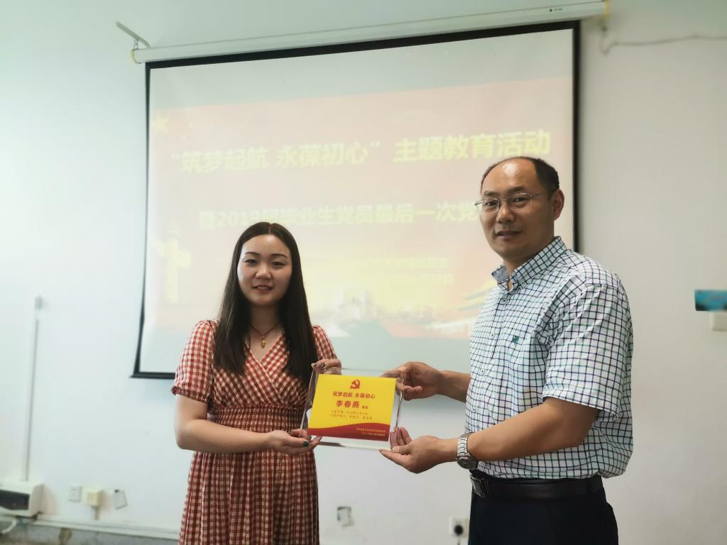 党课结束后,党总支向毕业生党员赠送了毕业生党员留念牌。有毕业生党员在收到学院精心准备的留念牌时,动情地表示,感激母校带给所带给我的宝贵财富,在即将起航、奔赴工作岗位之际,要用梁家河精神激励自己,铭记母校老师领导的祝福,在工作岗位和今后的学习生涯中彰显党员本色。