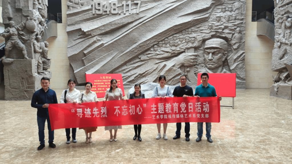2020年6月10日,艺术学院视觉传达与媒体艺术系党支部的“寻迹先烈,不忘初心”主题教育党日活动在连云港市革命纪念馆顺利开展。本次活动是视觉传达与媒体艺术系全体教师专题教育活动的一项重要内容,由支部书记张青荣主持。旨在引导全系教师追寻红色革命印记,缅怀先烈,反省当下,同时结合实践,更好地学深悟透,增强党员党性修养,提升全体教师内涵修养。