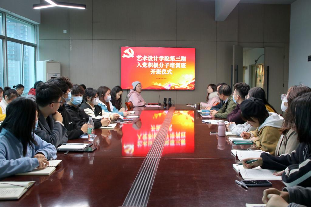 10月22日下午,艺术设计学院20余名入党积极分子齐聚艺术楼409室,参加学院党校第三期入党积极分子培训班开班式。开班式由党政办副主任陶梦涵主持,党总支副书记王欢、副处级组织员吴良军、学生第一党支部书记徐熙檳、学生第二党支部书记敖燕环、学生党支部全体学生党员参加开班式。
