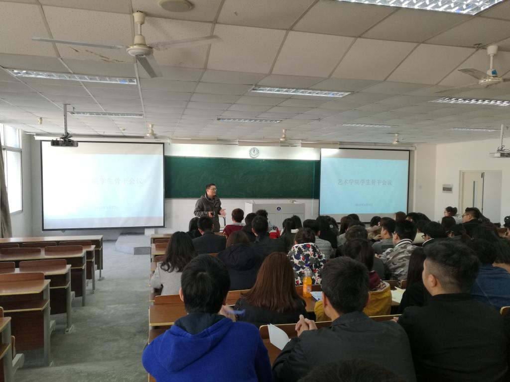 3月7日中午,艺术学院在通灌校区TZ310教室,召开了艺术学院全体学生骨干会议。参加会议的有院党总支副书记李春、王智金,辅导员英启琛、高慧。