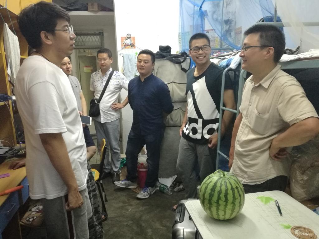 还记得2016年6月23日夜的大暴雨吗?在遭遇大暴雨的情况下,艺术学院领导依然深入学生宿舍送别2016届毕业生,让毕业生备感温馨和感动。2017年的6月24日,又是送别日,又遇大暴雨,似乎老天也不舍得同学们的离去,艺术学院全体党政领导、系主任、毕业班班主任依旧延续传统,不为暴雨所难,艺术学院院长申屠留芳带队深入女生宿舍,党总支副书记王智金带队深入男生宿舍,一间间宿舍慰问,一个个毕业生道别。为保障学生顺利毕业,清凉度夏,艺术学院还为每个毕业生宿舍发放了西瓜,虽然价值不高,但也是一片心意。