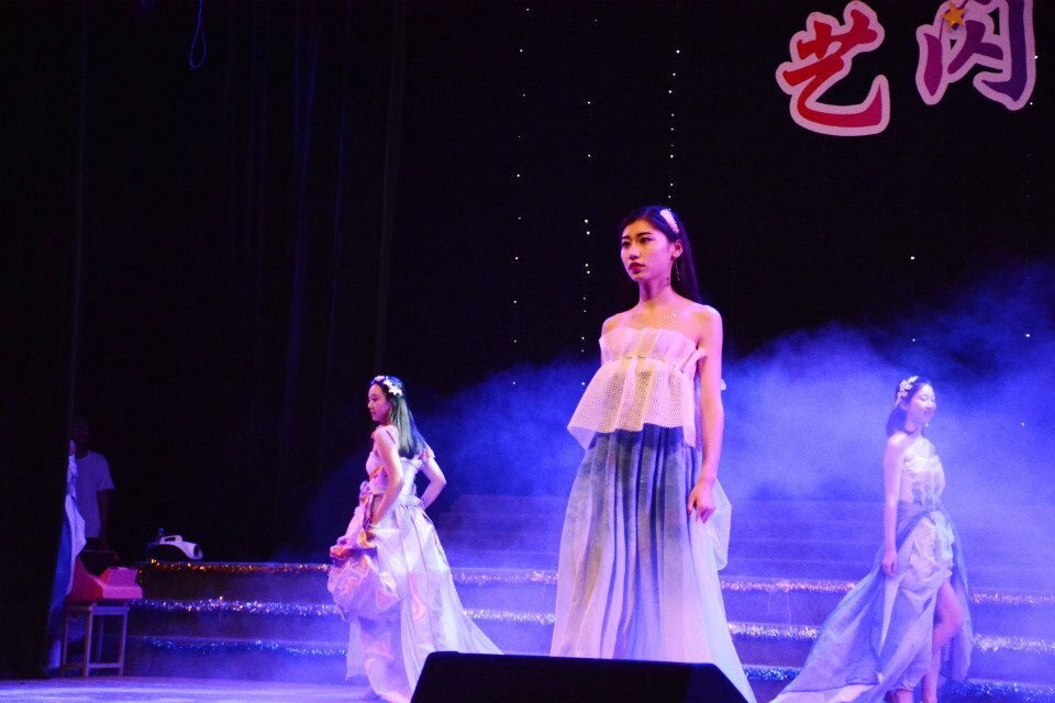 2017年艺馨艺术团继续努力,倾力设计打造了“梦中的海洋”系列原创礼服。设计和制作服装历经两个月的时间,从征集设计稿到评选出优秀作品,投入后期制作,参赛同学以小组为单位设计制作礼服,整个过程得到了艺术学院和全校爱好服装设计同学的大力支持。值得一提的是,这次服装设计的设计师们竟然大多是艺术学院大一学子,“自古英雄出少年,少年有梦在今朝!”大家把创建大学的热情转变为服装设计的才情中,礼服款式新颖多样、风格迥异,一针一线都凝聚了设计师别出心裁的创意。浅色棉纱织锦绣、海天一色梦清尘。一个个海洋图案,一处处细节设计,无不表达出艺术学子对梦中的海洋大学的期盼和想象。