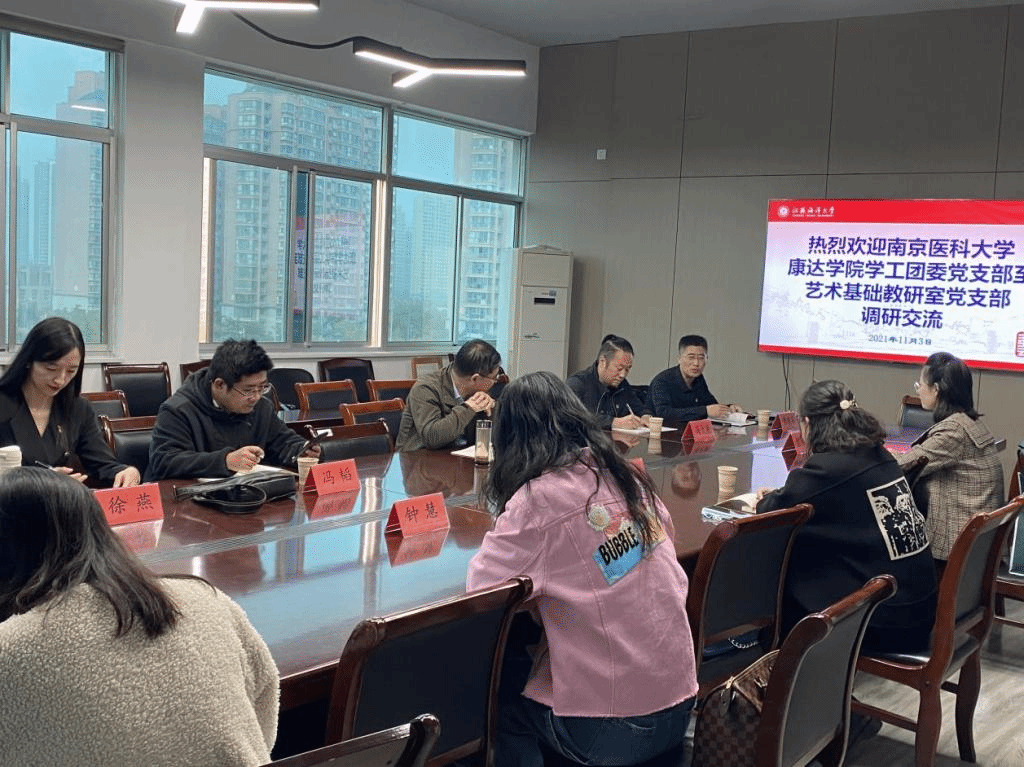 为深入贯彻落实党中央关于开展党史学习教育部署要求,融合推进“两在两同”建新功行动与“我为群众办实事”活动,11月3日下午,南京医科大学康达学院学工团委党支部书记、副处长钟慧,副处长赵越一行4人到艺术设计学院,与艺术基础教研室党支部开展“传承伟大建党精神 勠力践行初心使命”主题党日活动,并就教育部全国高校样板支部申报建设作经验交流。