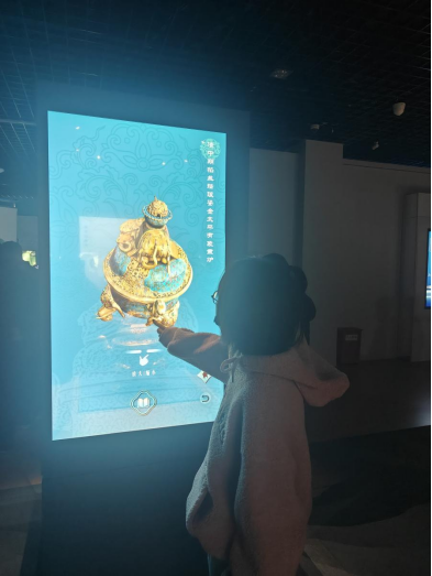 参观过程中,数字媒体技术的运用也是一大亮点。在博物馆的VR虚拟观展区,党员们佩戴上VR眼镜,沉浸式体验文物之美。这一现代科技手段让党员们不仅可以“走”进展品中,探索每一件文物的细节,还能够通过虚拟场景更加深刻地感受到文化的传承与创新。