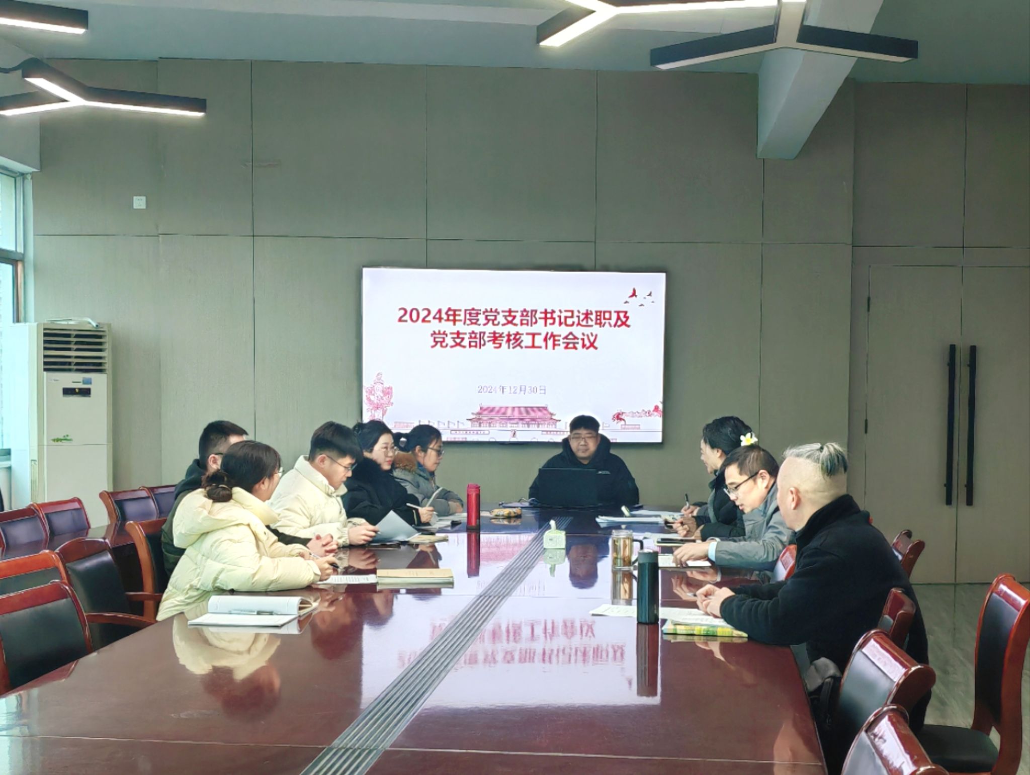 根据学校党委关于基层党组织考核工作的安排,按照《江苏海洋大学党支部建设工作目标及考核办法》(江海大委〔2021〕58号)文件要求,我院于12月30日在艺术楼409召开了党支部考核工作会议,院党总支副书记王欢,院党总支委员、副院长吴冬梅,院总支委员冯大康,院党政办主任王晓莉组成考核组,对所属教师、学生党支部2024年工作开展评议,王欢主持考核会。