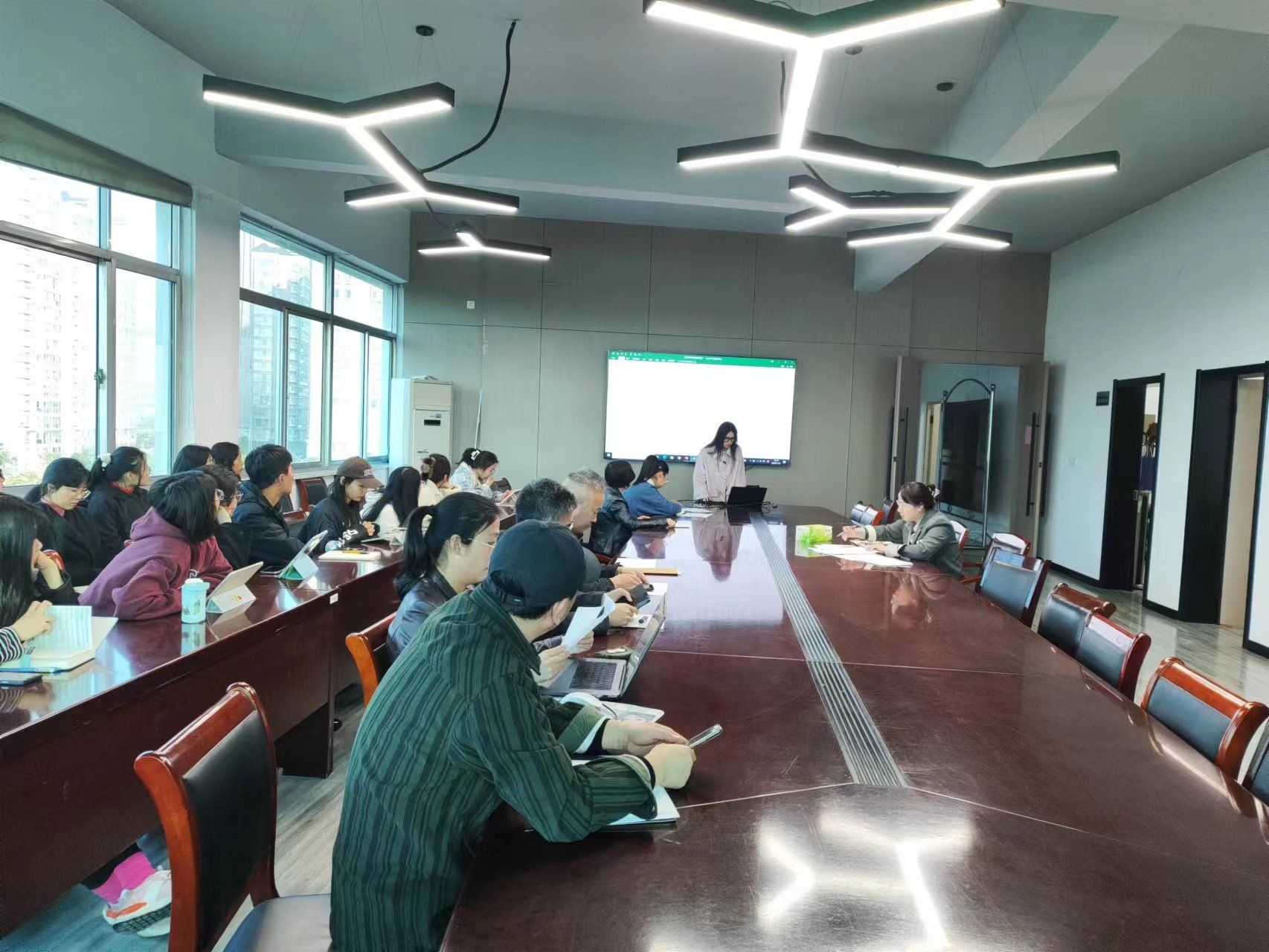 11月8日下午,我院在艺术楼409会议室开展研究生期中教学检查暨第三次教学例会,会议由副院长曾英主持,本学期研究生课程任课教师、教研办老师和全体研究生参会。