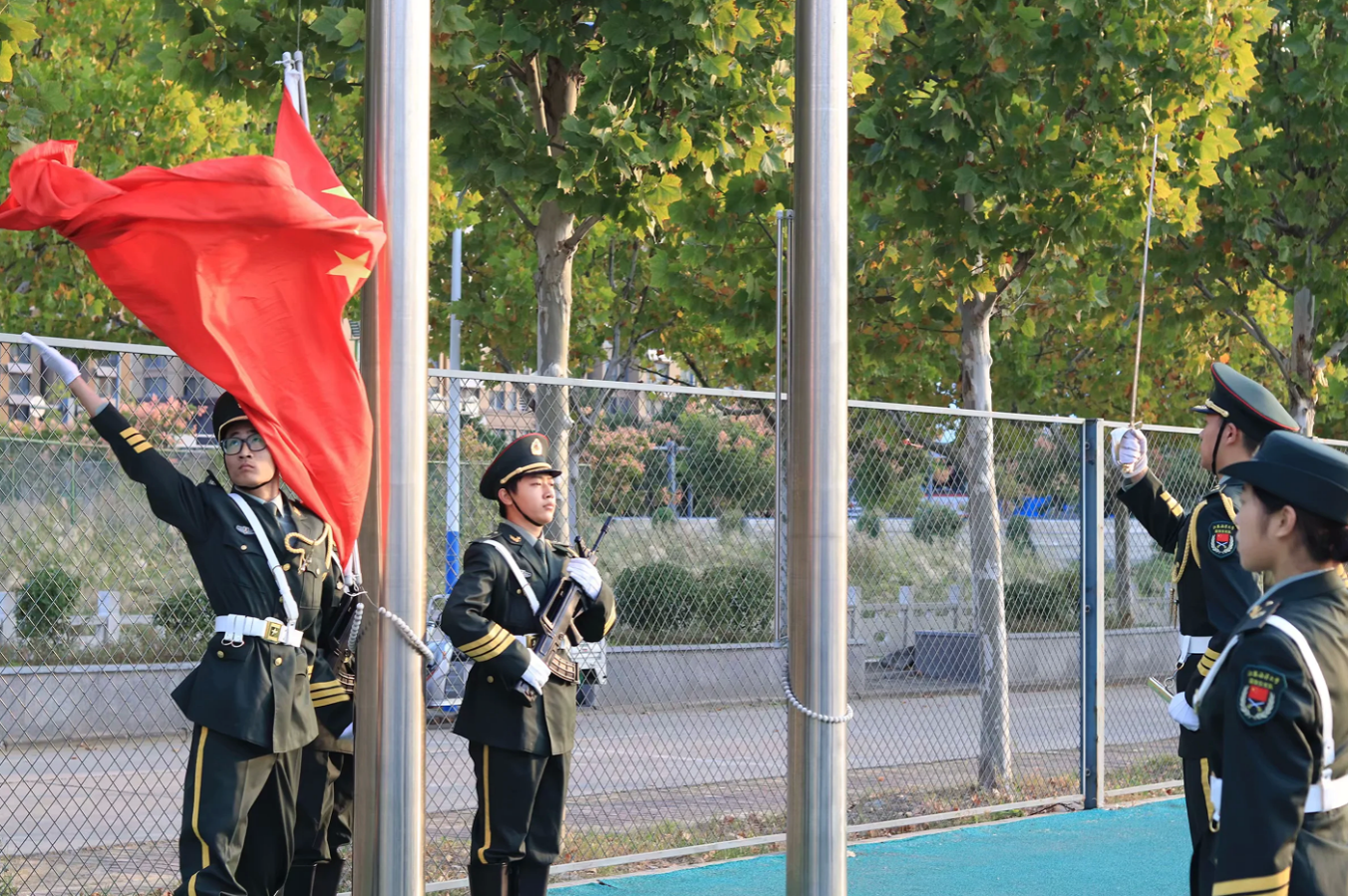 主席台上,“创建诚信校园 树立诚信学风 争做诚信学子”的标语格外醒目,五星红旗在全体师生齐唱国歌声中冉冉升起。