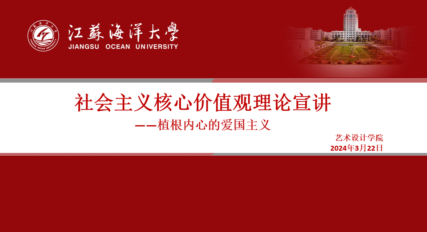 3月22日下午,艺术设计学院在学生社区A7/A8 205开展社会主义核心价值观理论宣讲—植根内心的爱国主义。院入党积极分子、入团积极分子与学生干部代表参与本次理论宣讲,宣讲由院辅导员徐熙檳主持。