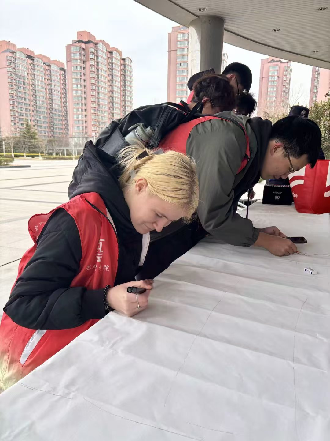活动吸引校内学生广泛参与,其中还有本校留学生。留学生不时与青年志愿者交流心得。他分享着自己在本国参与公益活动的经历,探讨如何将雷锋精神融入日常。此次“雷锋心 志愿行”主题活动,不仅深化了青年学生对雷锋精神的理解,更是雷锋精神的一次国际传播。留学生通过画笔,深入理解雷锋精神内涵,成为雷锋精神的传播者。志愿者李佳萍表示,希望通过系列志愿活动,鼓励更多人传承雷锋精神,让这份温暖与奉献的精神在世界范围内传递,激励更多青年学生成为新时代的追“锋”者 。