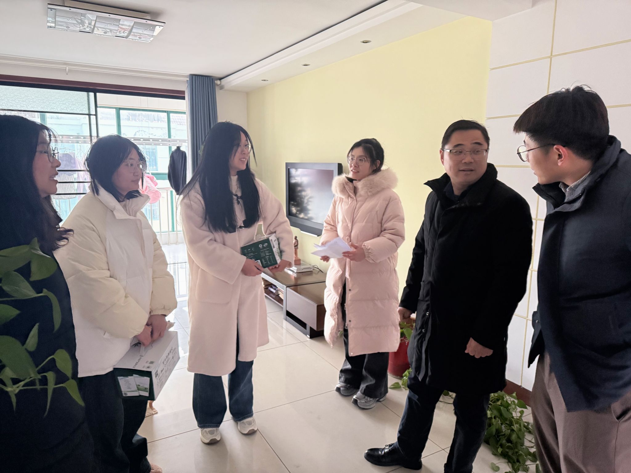 近日,学院党总支副书记王欢带领全体辅导员,对目前在外租住走读的18名同学进行了全覆盖式的走访慰问,旨在深入了解走读学生的学习、生活状况,为学生的成长成才提供更精准的支持与关怀。