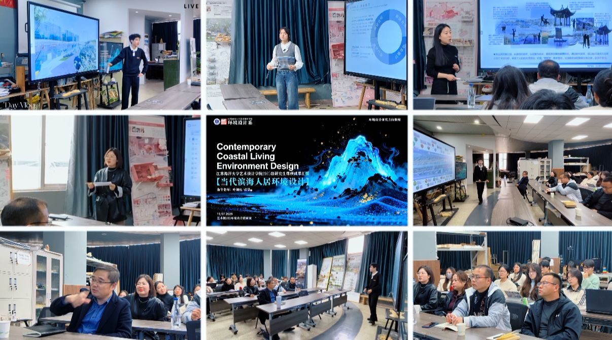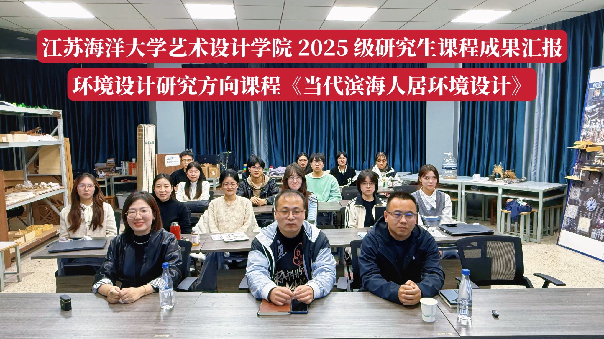 为破解滨海城市人居环境设计难题,近日,江苏海洋大学艺术设计学院2025级研究生课程成果汇报——《当代滨海人居环境设计》于艺术楼305环境设计教研室举行。本次汇报呈现了环境设计研究方向研究生围绕连云港东盐河水韵河滨公园景观设计场地调研展开。艺术设计学院副书记王欢、土木与港海工程学院张毅主任、姜柏宇博士莅临现场指导,环境设计系叶姗虹、张景两位导师带领研究生团队完成成果展示。